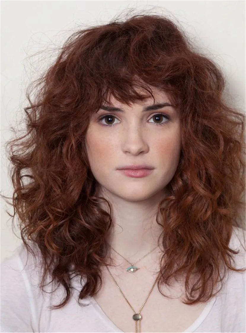 Trendy Layered Long Curly Hair Capless Synthetic Hair With Bangs Wigs 14 Inches